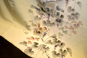 Tokyo Silk proves its high quality with confidence to deliver comfort. On January the 22nd in 2010, Tama Silk Life 21 Study Association, received a commendation for contributing to the traditional costume, and praised as the association of cultural merit by The Culture Foundation For Promoting the National Costume, the foundation authorized by the MEXT (Ministry of Education, Culture, Sports, Science and Technology, The quality of Tokyo Silk was certified as being the most superior; accordingly Grade 5A was given by the Foundation of Gunma Prefectural Council for Evaluation of Cocoon Quality. Tokyo Silk holds an exhibition once every two years to introduce local residents to our activities and knowledge about silk. We produce various breeds of cocoons, but our premium kind is Aojyuku, which is so delicate with a filament that is about 1.3 denier (a half of the thickness of common cocoons). <Photo Kimono and Kijaku (fabric for kimono) made by Tokyo Silk. “3rd Tokyo Silk Exhibition”.
