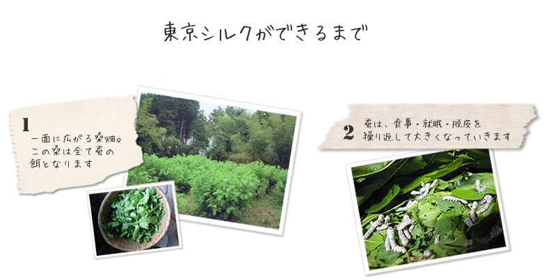 多摩にいるわずか7軒の養蚕農家さんが立ち上がり、無農薬で育てたひろ~い桑畑の葉っぱでのびのびと蚕を育て、2件しかない製糸工場で、生繰りという手法で繭から糸へ。そうして「東京シルク」が生まれます。2020年現在、東京で養蚕をされているのは、2軒となりました。